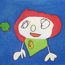 子供が描いた落書きを元に油絵で作品に変えていきます。